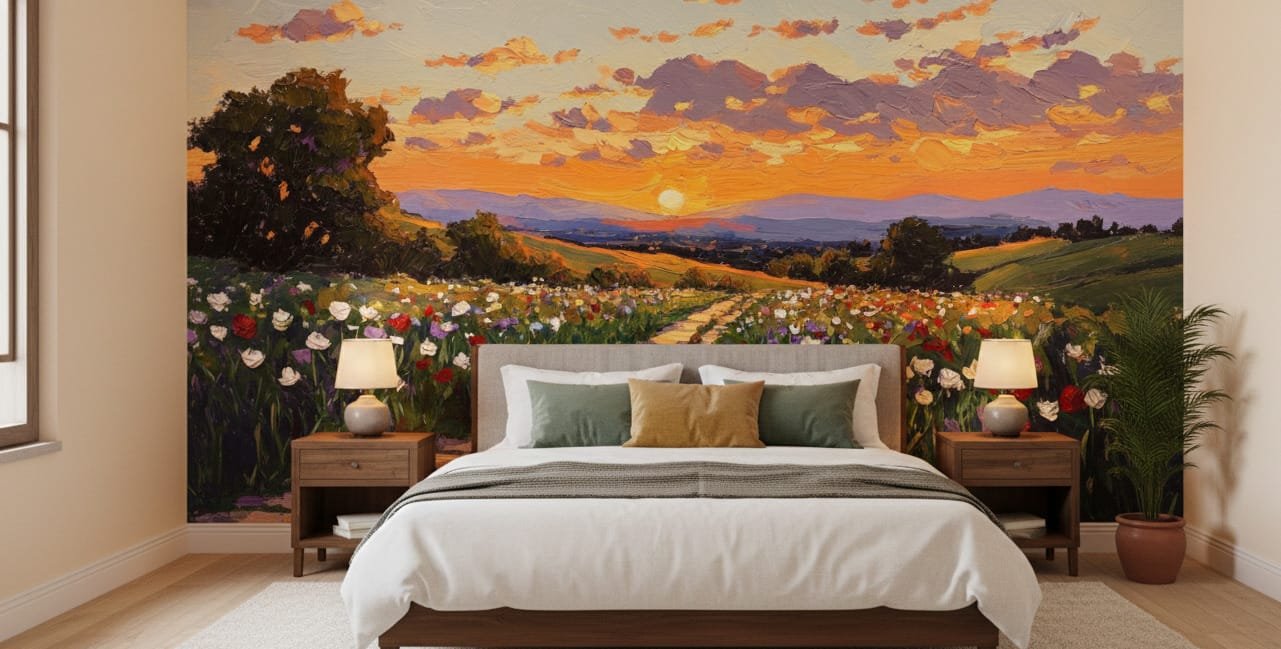 Sunset Wildflower Path Mural